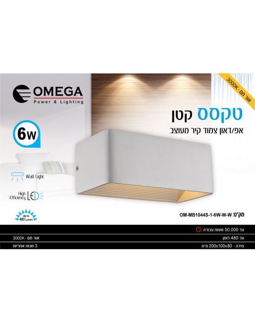 גוון אור: לבן חם: 3000K | הספק: 6W