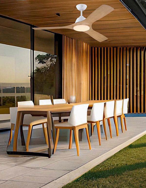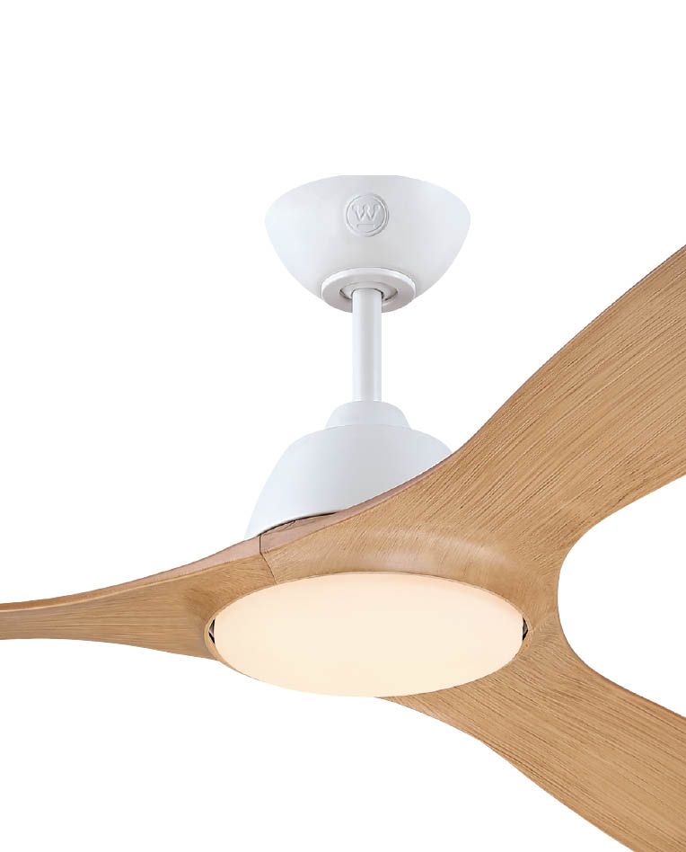 מאוורר תקרה 52″ דגם JESSICA מיועד לשימוש פנימי וחיצוני- לפרגולות / מרפסות IP44 עם מנוע DC כולל שלט+תאורה 28W ניתנת לעימעום באמצעות השלט ו- 3CCT – שלושה גווני תאורה לבחירה. צבע המאוורר לבן ומגיע עם כנפיים ייחודיות בצבע דמוי עץ אלון. WESTINGHOUSE
