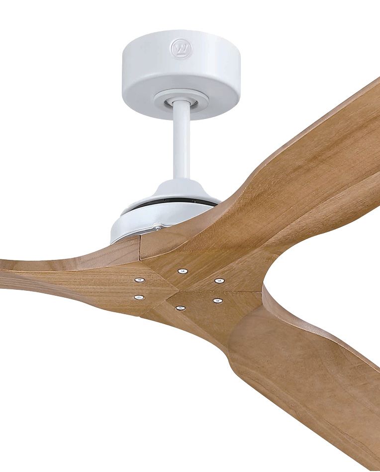 מאוורר תקרה 80″ דגם Denver עם מנוע DC כולל שלט. צבע המאוורר לבן ומגיע עם כנפיים מעץ אמיתי בצבע עץ אלון. WESTINGHOUSE