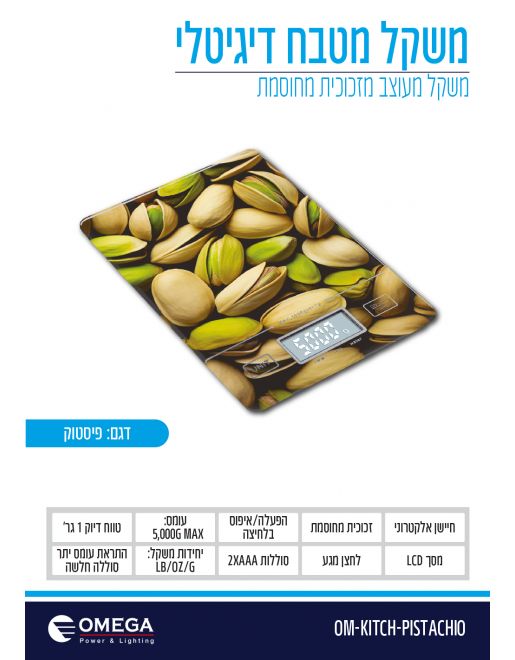 משקל מטבח דיגיטלי בעיצוב פיסטוקים OMEGA