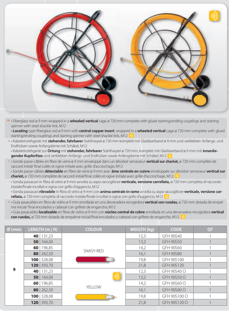 סרט משיכה פיברגלס מחוסם + כננת 100 מ’ עובי 9 מ”מ + חוט נחושת GFH 90S100-O
