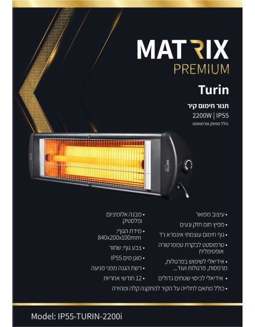 תנור חימום לתליה על הקיר כולל מפסק ותרמוסטט